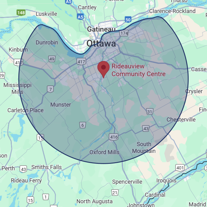 We proudly serve Ottawa and surrounding areas. Our standard service area includes locations within 40km of the Rideauview Community Centre. If you are outside this area, reach out and we will do our best to accommadate you. Please note that additional travel fees may apply.